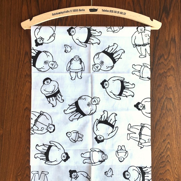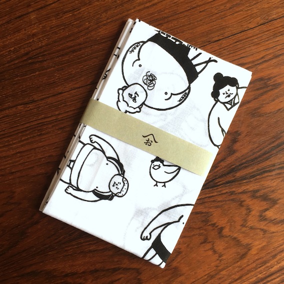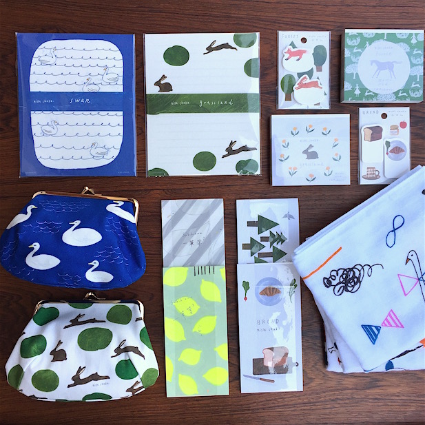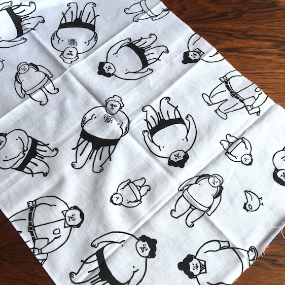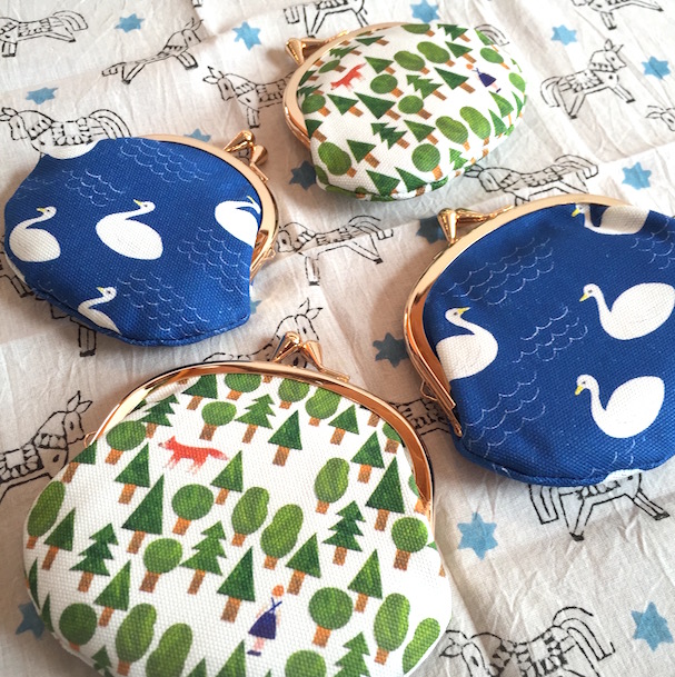 バックは、柴田ケイコさんのイラストのいろいろパン柄のハンカチ。