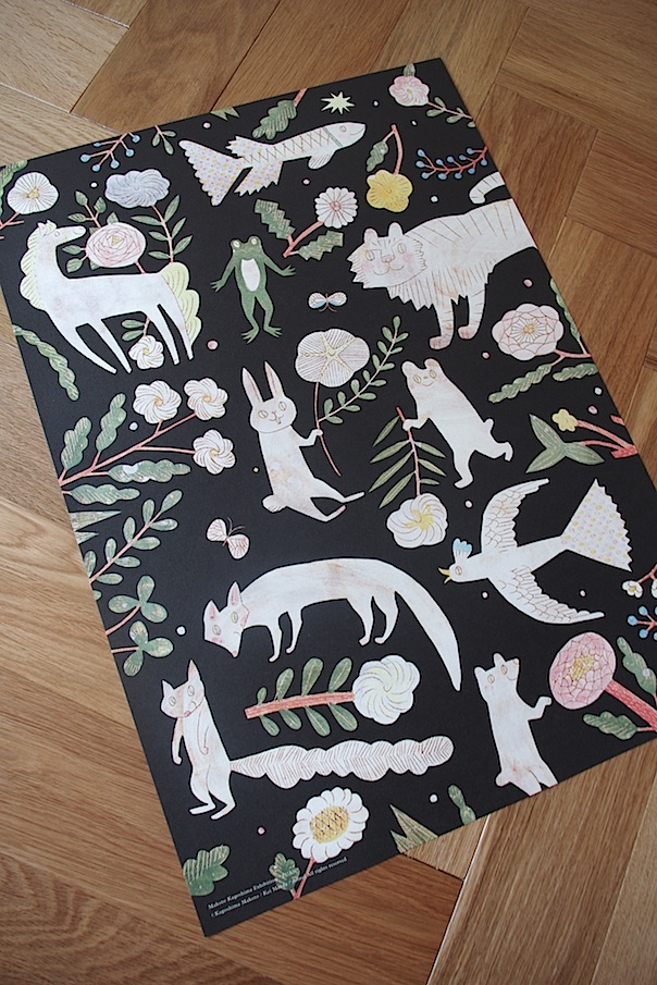 動物や植物などがたくさん描かれています。
